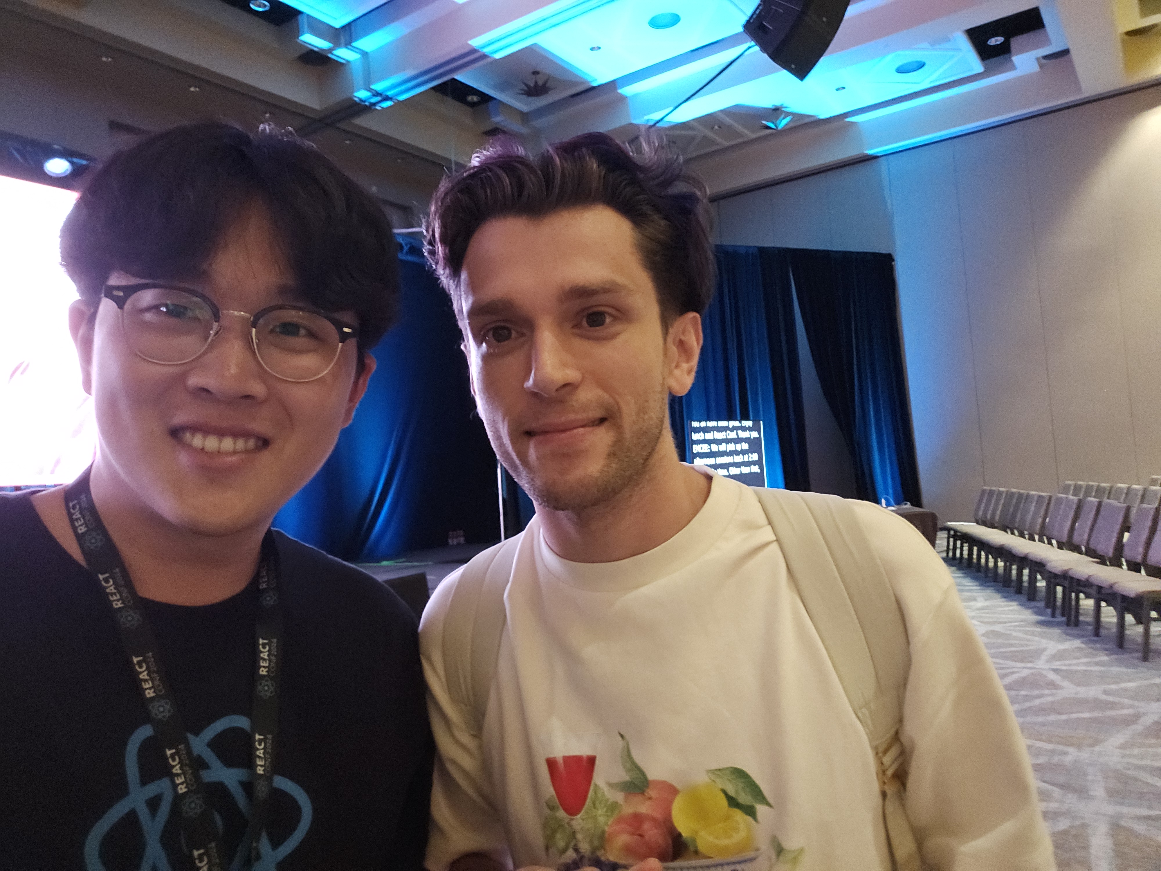 항상 유튜브로만 보던 컨퍼런스들, 맨 앞자리에 앉아서 보고 PR에서만 볼 수 있었던 개발자들을 실제로 보고 용기내 셀피 찍기도 했다.