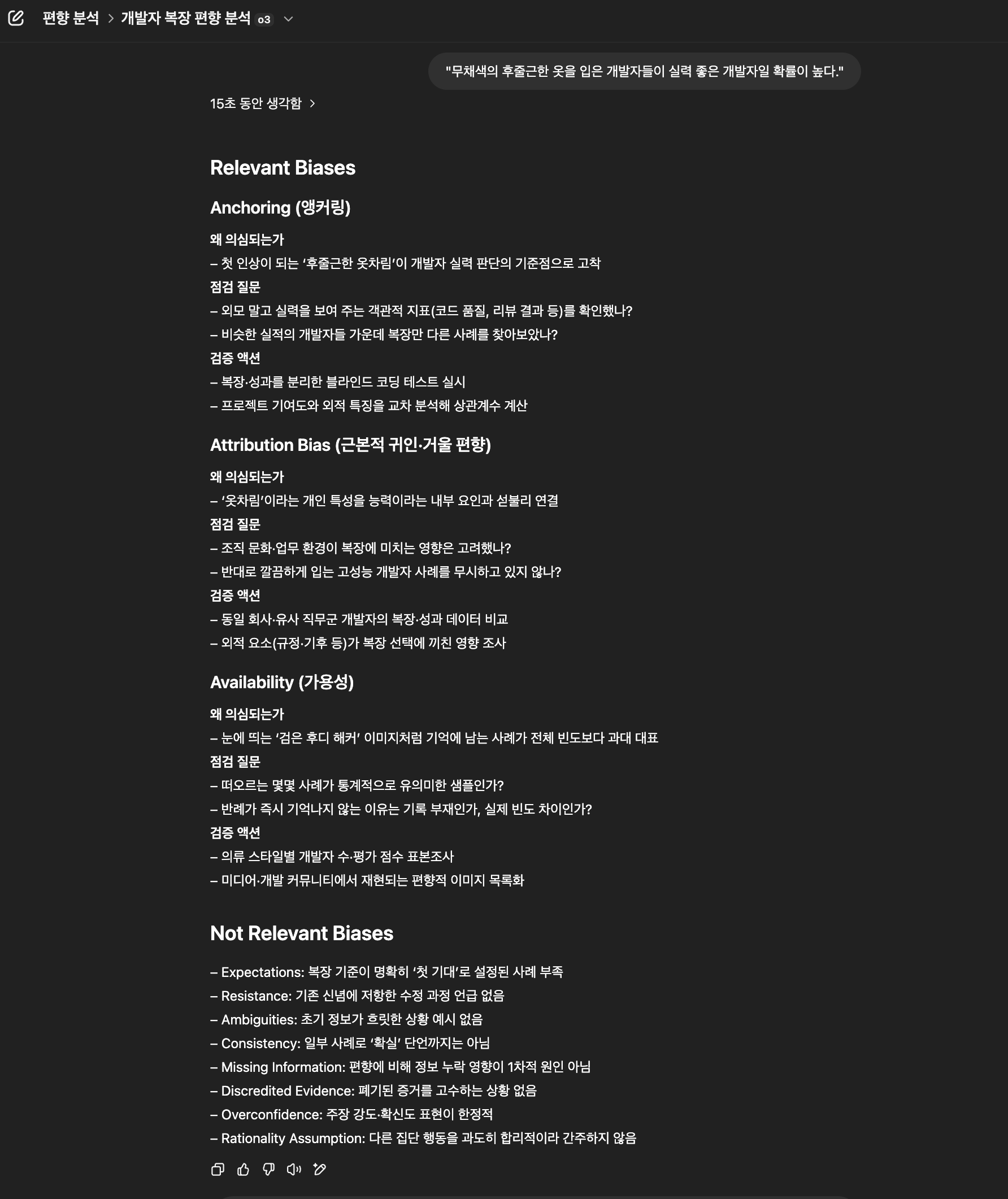 3. **우선순위 정렬** - 근거 강도·영향도에 따라 Relevant Biases 정렬