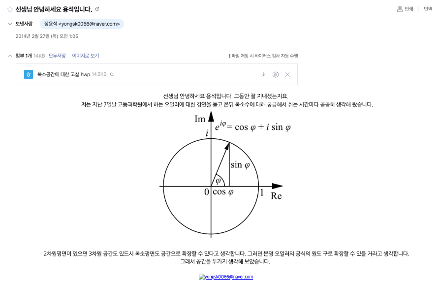 고등학생시절 여러 망상을 더러 하던 시기라, 이를 해소할때 페이스북 수학 그룹을 이용해 질문을 올리거나, 선생님을 귀찮게 메일을 보냈거나 했었다.