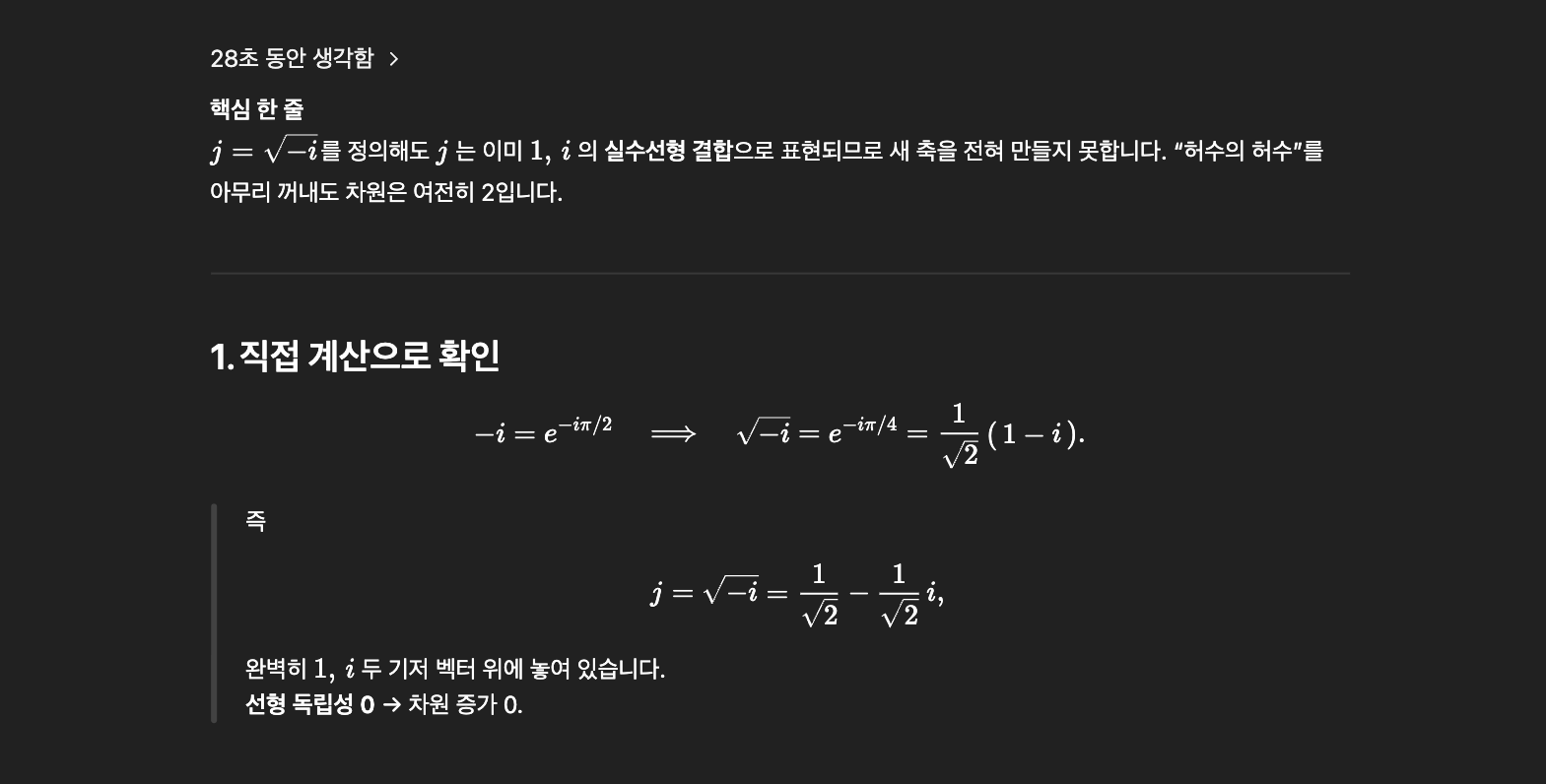 왜 j가 새로운 축이 아닌지, 왜 2차원에서 4차원으로 확장하는지에 대해서도 친절한 유도를 통해 10년만에 질문의 답을 찾아주었다.