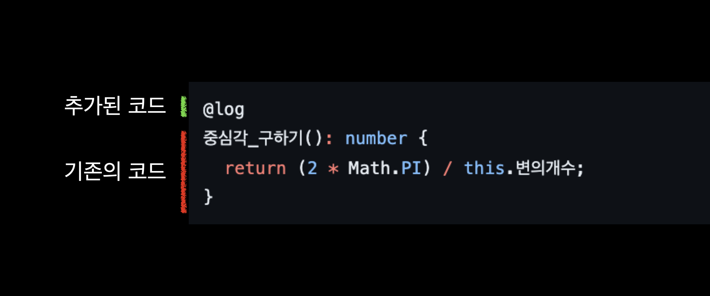 그렇다면 JavaScript에서도 데코레이터가 있다면, 세모의 코드를 건드리지 않고 로직을 추가할 수 있을 것이다.
