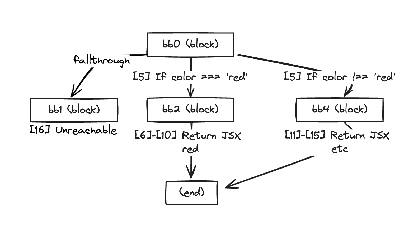 enterSSA: SSA(Static Single Assignment) 형태로 변환eliminateRedundantPhi: 중복된 Phi 노드 제거constantPropagation: 상수 전파inferTypes: 타입 추론validateHooksUsage: 훅 사용의 유효성 검사validateNoCapitalizedCalls: 대문자로 시작하는 함수 호출 검사analyseFunctions: 함수 분석inferReferenceEffects: 참조 효과 추론deadCodeElimination: 데드 코드 제거inferMutableRanges: 가변 범위 추론inferReactivePlaces: 반응형 장소 추론leaveSSA: SSA형태에서 일반적인 형태로 복귀