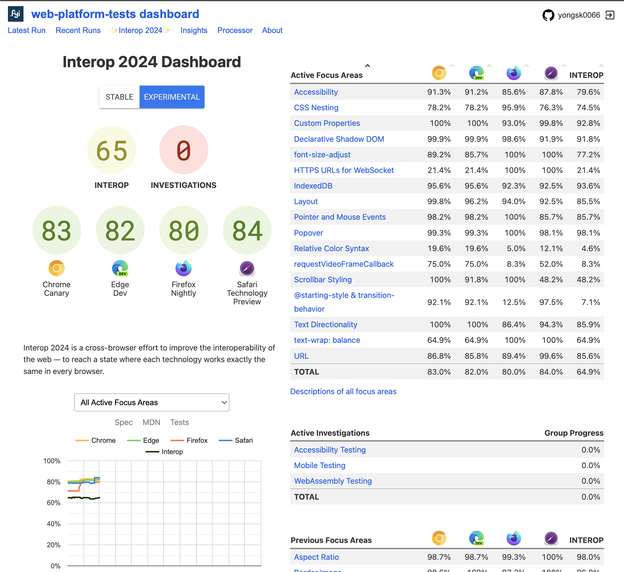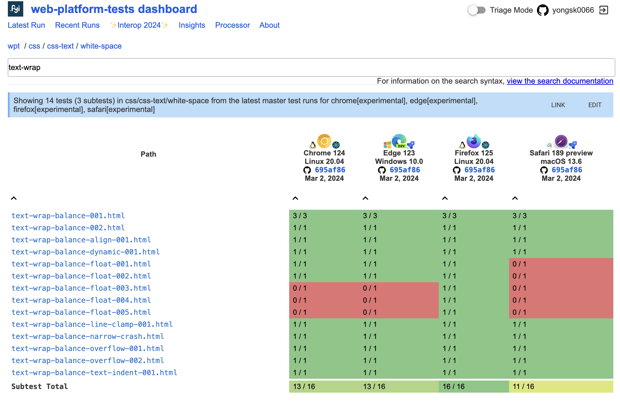 테스트는 w3c에서 관리하는 wpt.fyi(Web Platform Tests Dashboard)에서 이뤄지고 있다. wpt는 web platform test의 약자로, 웹 플랫폼의 표준을 테스트하는 테스트 스위트이다.