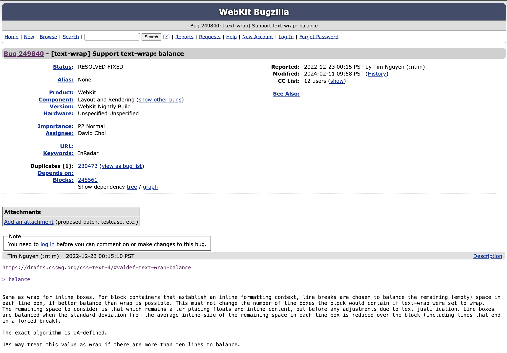 2d299a2 Provide an initial implementation of `text-wrap: balance` https://bugs.webkit.org/show_bug.cgi?id=249840 rdar://problem/103663513 Reviewed by Alan Baradlay. This patch implements `text-wr...